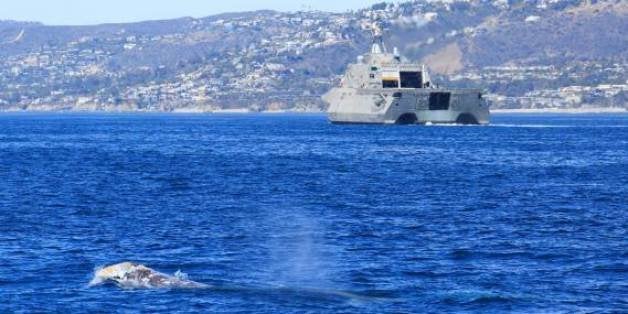 On Sunday, the USS Coronado, a new Navy vessel, came very close to some gray whales migrating along the California coast. Captain Todd Mansur of Dana Wharf Sportfishing and Whale Watching was leading a whale-watching expedition and noticed the massive Navy ship was on course to collide with the pod, according to KABC.