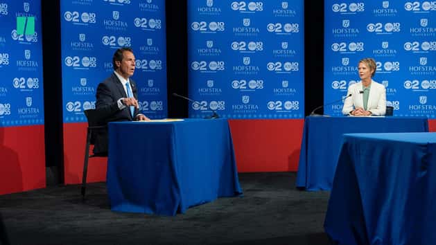 The two candidates faced off at Hofstra University on Long Island about two weeks before the Sept. 13 primary election. Hours before the debate, former Vice President Joe Biden endorsed Cuomo for his third term as governor.