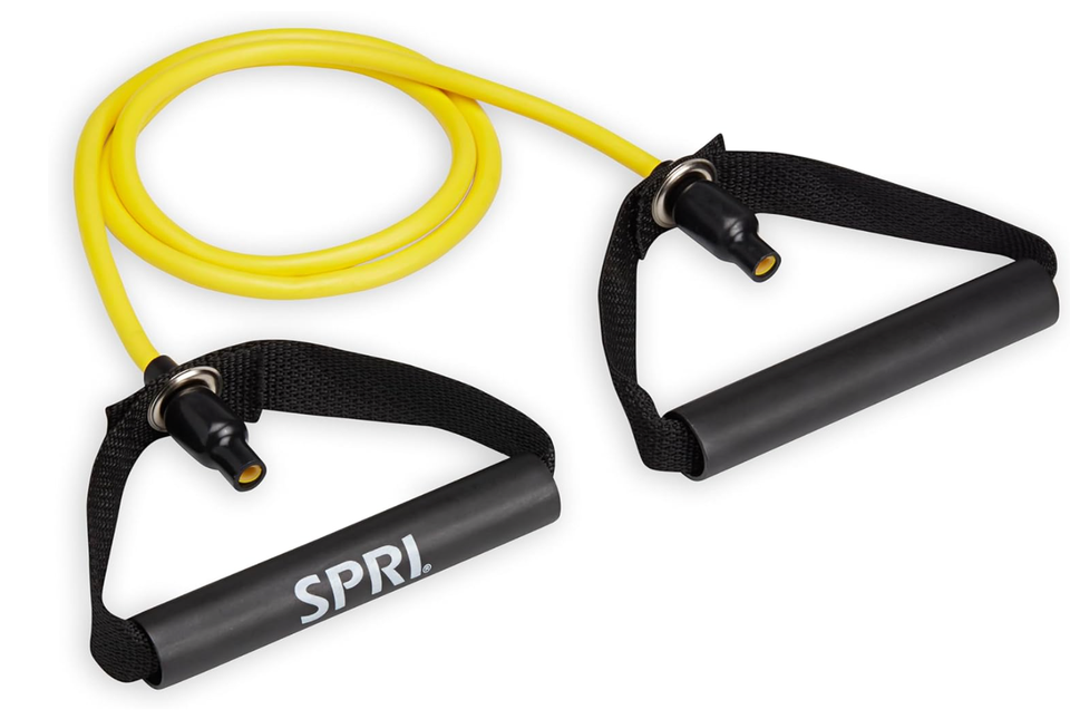 This type of resistance band with handles are a great alternative to lifting weights. You can also use them while traveling; it's an easy way to keep the body moving even when you're on the go. Bands with handles are often easier to use and hold onto, and they're easy to store in small places discreetly. These bands come in a few different resistance strengths.