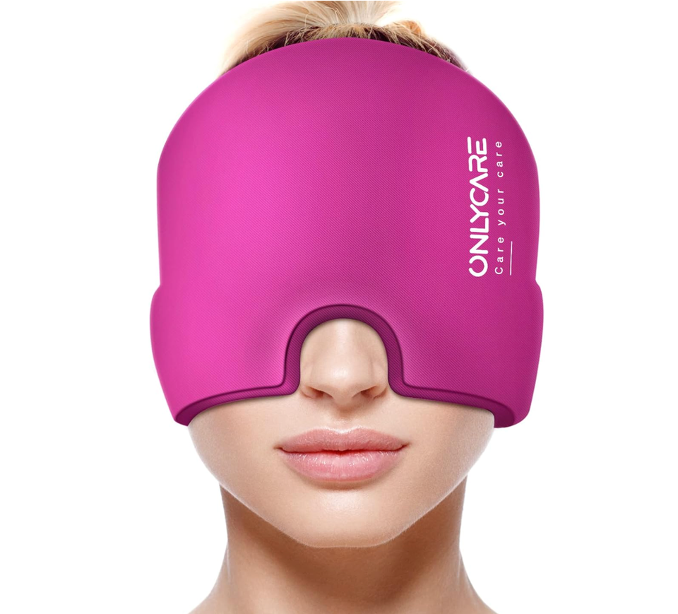 This cap offers cooling compression around the entire face and head. It can help to provide a fair amount of relief while also blocking out light and helping you to relax. It can stay cold for up to two hours and is made with stretchy, moldable material that cradles the contours of your head and face. It's available in pink or black.