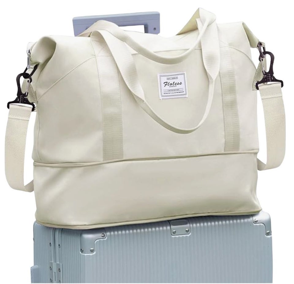 The Béis weekender bag has a long history of dedicated fandom, and since its grown in popularity, tons of affordable lookalikes have popped on the scene. This on-sale travel duffel is just one great example hiding among the ranks with 4.7 out of 5 stars on Amazon. It's machine-washable, outfitted with tons of interior and exterior compartments, has a trolley strap, and, like the original, features a whole separate section on the bag's base to hold shoes, dirty clothes and more.