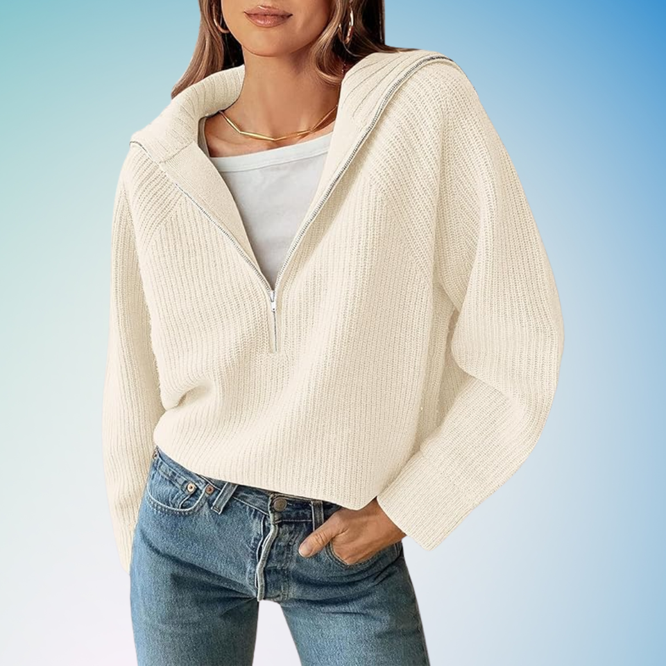 This perfectly slouchy and slightly cropped half-zip sweater features an oversized collar, batwing sleeves and is made from a chunky ribbed knit. You can find it in five colors (though not all will be the same discount for Prime Day) and women's sizes S-XL.
