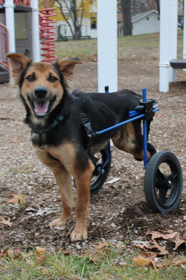 Donations came pouring in, and the $2,000 fundraising goal was soon surpassed. Leo arrived in Canada last month. He is currently being fostered by Jamie Smith of Sarnia, Ontario, while he recovers. He uses a wheelchair from K9 Carts.