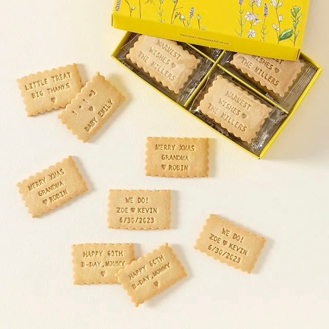A box of shortbread cookies with a custom message