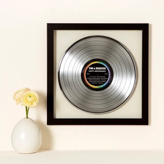 A gift that acts as decor, a conversation piece and a music playlist all in one, this personalized record can be a thoughtful way to nod to a loved one's favorite music and memories or accomplishments. Choose between platinum or gold for the record, and a black mat or floating glass frame. You can customize the label's color, title and subtitle, and add up to five songs that mean something to them and you. (Just know that this is made from an upcycled vinyl, so it's not really meant for actual listening.)