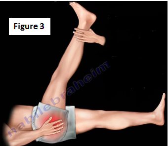 The Lasegue's Maneuver is used to reproduce the pain by the hip being flexed to 90° and the knee extended (Figure 3). The sciatic nerve is compressed by the piriformis muscle, fibrous bands, or by vascular anomalies. Be aware of possible anatomical variation of the sciatic nerve.