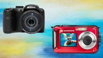 About as simple as a disposable, this camera has a manual built-in flash and operates by pushing the top button to take a photo and rolling the film to get to the next shot. It can use any type of 35-millimeter film, so you can play around with brands and colors like black and white or sepia. You're gonna need a single AAA battery and some film to get started.