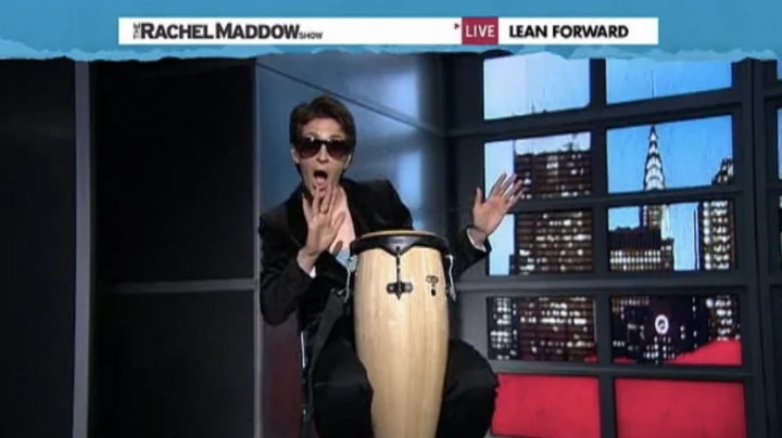 This was how Rachel Maddow opened her Tuesday show: she dimmed the lights of her set, put on a pair of black sunglasses, and sat down in front of a conga drum to recite these jagged, stream-of-consciousness lines of Beat poetry: