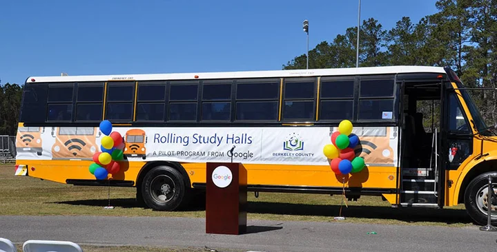 For some students in Berkeley County, South Carolina, going to school means a 90-minute commute each way on a yellow school bus. Now, Google is helping those kids make the best use of that time by providing free wifi and internet connections on 28 of those buses, turning each into a “Rolling Study Hall.”