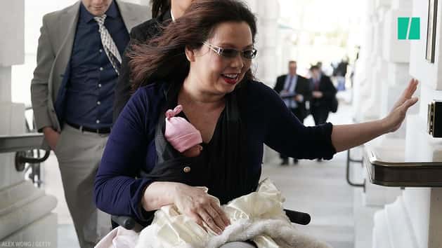 Senator Tammy Duckworth (D-Ill.) appeared on the Senate floor today with a special guest: her newborn daughter Maile.