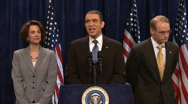 SNL opened last night with Obama (Fred Armisen) speaking on health care and the upcoming elections in San Francisco and Nevada. Flanked by Nancy Pelosi (Kristen Wiig) and Harry Reid (Will Forte), they repeatedly acknowledged the consistent unpopularity of health care reform and the affects it would have their chances for reelection.