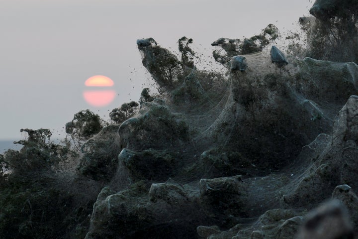 Apparently, unusually warm weather is to blame ― or credit, depending on how you look at it ― for the phenomenon. Warm temperatures lead to an uptick in mosquitoes and gnats, i.e., delicious spider food.
