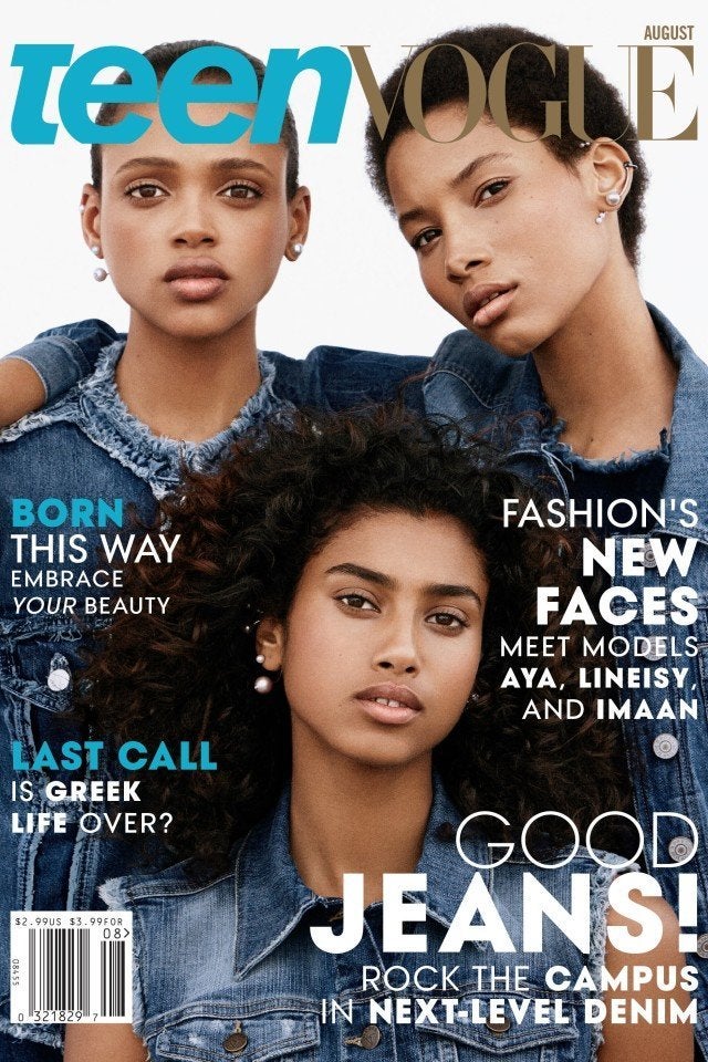 Ironically, yet also appropriately, Welteroth is the author of August's cover story with the three models of color. She shared the cover image on her Instagram account with the caption: "SO incredibly proud of this ICONIC @teenvogue cover. These magnificent beauties are changing the game just being who they are: Talented, poised, conscientious, self-assured, silly...I could go on and on. Thank you for giving me this opportunity to get to know you and to share your incredible stories with all the girls who look up to you."