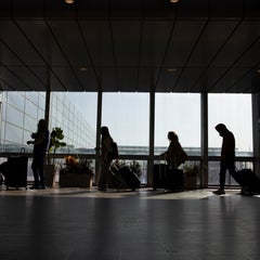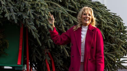 In sunlight, it's a vibrant green, and passersby guzzle beer out of glass bottles before resting underneath it. At sunset, it's a dark shadow with sinewy limbs, and a team of runners rushes past. At nighttime, it blends in with a grey sky.