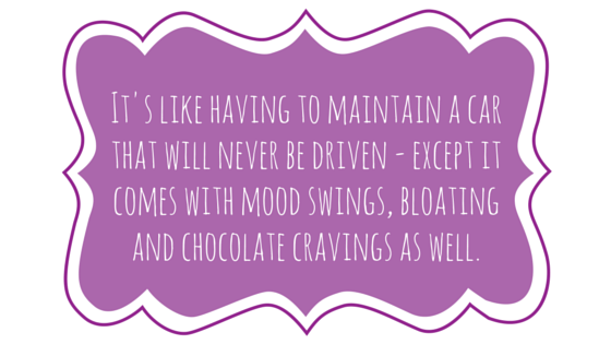 But I have a uterus that goes through the motions of preparing for an event that will never occur, every 28 days -- and it's annoying. It's like even my own body says to me "are you sure you don't want kids?" or "just a reminder that you can still try if you want."
