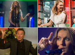 Celine Dion displayed some amazing air guitar skills on "Today", "Oprah", and "Ellen" this week. For those of us who watched every show, she was kind enough to mix up her awesome gestures for each audience. Oprah's audience got a conservative show, while Ellen's audience got a whole lotta seduction via those big sexy eyes. But she saved the best moves for "Today", the only show with no audience at all. She really turned on the sex appeal for this performance. Guess Roker has that affect on women. One thing is for sure, this superstar doesn't have stage presence, she has stage "presents", and she brought enough gift-wrapped boxes of air guitar solos for everyone.