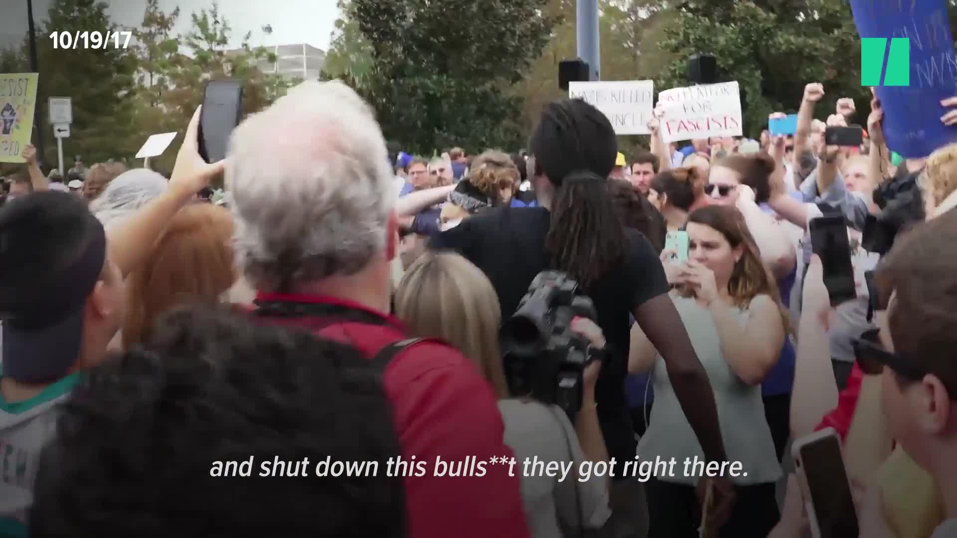 Protesters chanted “Fuck you Spencer!” and “Go home Spencer!” as the white supremacist spoke.