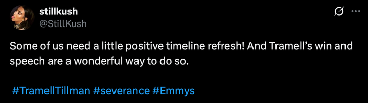 Tramell Tillman won the Emmy Award for Outstanding Supporting Actor in a Drama Series for his role as Mr. Milchick in “Severance” on Sunday night.