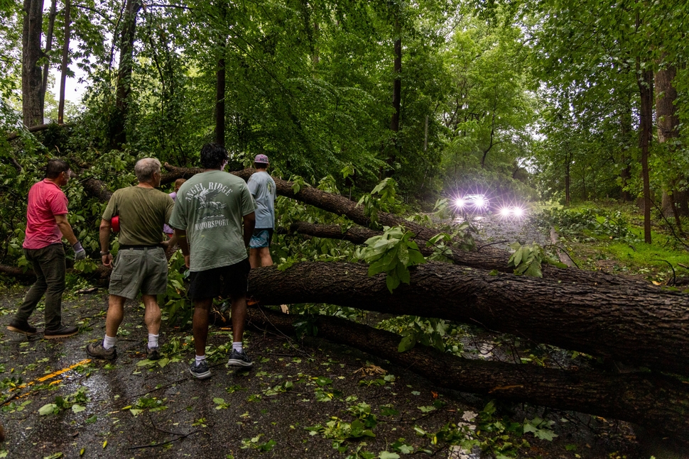 An extreme thunderstorm downed trees at the park’s Great Falls entrance in Maryland, backing up exiting cars for more than an hour. Relief eventually arrived — in the form of locals with chainsaws. They cleared the road while park employees were busy dealing with fallen limbs along other roadways, according to Capetta, who was stuck in the traffic.
