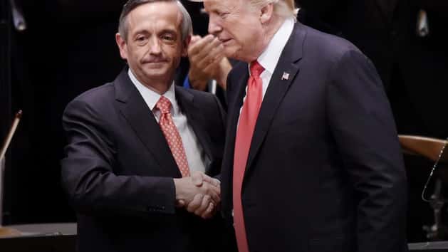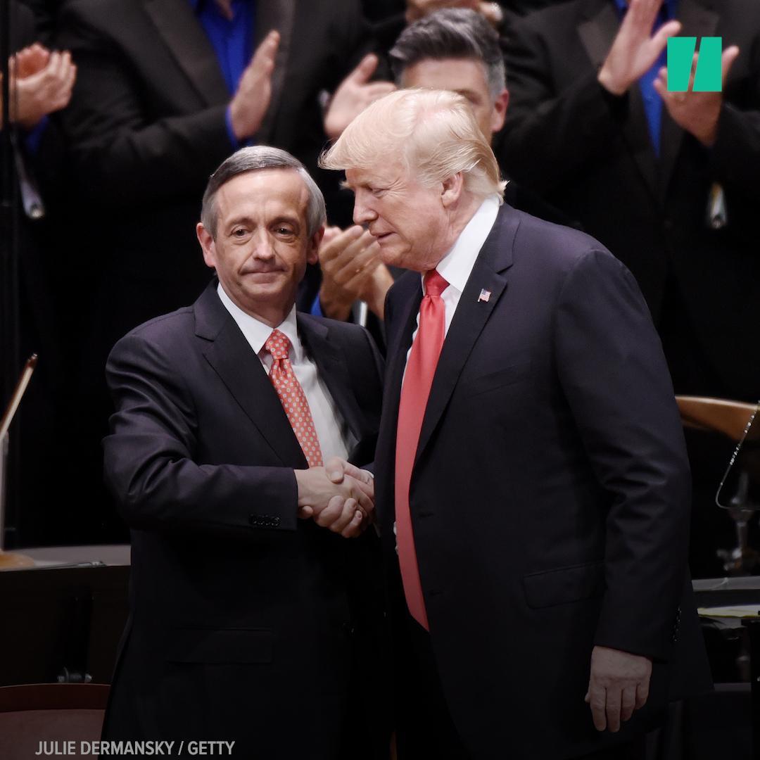 Jeffress, who has been a guest in the Trump White House, has a history of inflammatory comments. Last year, he said NFL players who kneel to protest racial injustice should “be thanking God” they haven’t been “shot in the head.” He also said Trump has God’s support if he wants to “take out” North Korean dictator Kim Jong Un. He’s also directed intolerant rants against gays, Muslims, Catholics, Mormons and more.