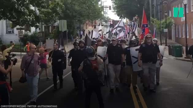 But instead of specifically criticizing members of the Ku Klux Klan, the white supremacists or the neo-Nazis who brought torches and bats to the rally, Trump blamed the unrest on “many sides.”