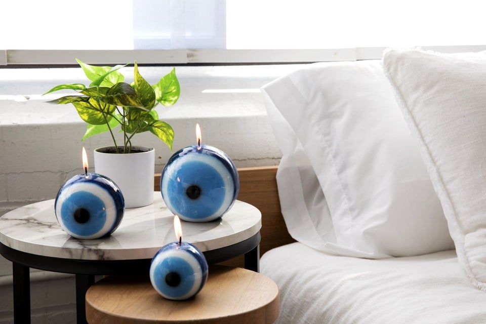 These gorgeous evil eye candles make a beautiful gift — and add a protective aura to your loved one's living space. Available in three sizes, the soy wax candles look especially lovely on bedroom nightstands, coffee tables and kitchen counters! They also come in pink and white versions.