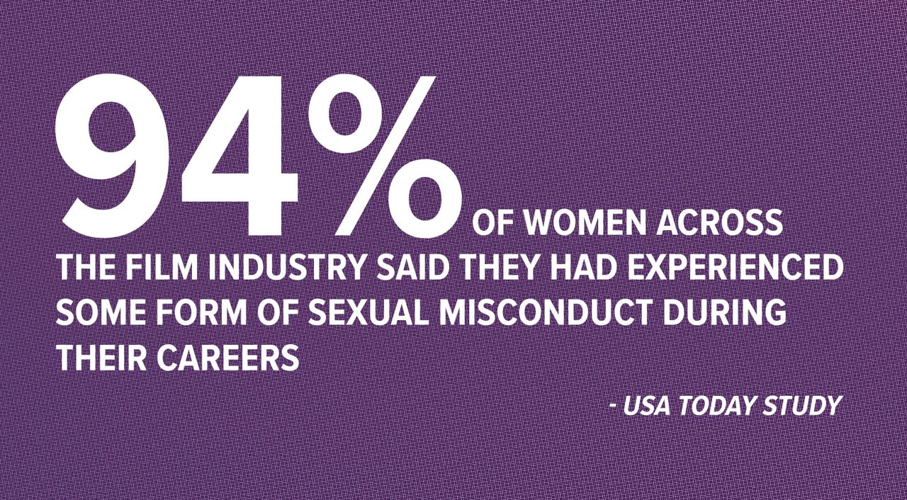 A recent survey of women employed across the film industry, conducted by USA Today in conjunction with the Creative Coalition, Women in Film and Television and the National Sexual Violence Resource Center, found that 94 percent of participants said they had experienced some form of sexual misconduct during their careers. The reported behavior ranged from “unwelcome sexual comments, jokes or gestures,” which 87 percent of respondents said they had experienced, to more severe behaviors like “being touched in a sexual way” (69 percent), “being propositioned for a sexual act/relationship” (64 percent), “being shown sexual pictures without consent” (39 percent) and “being forced to do a sexual act” (21 percent).