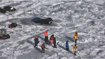 A passing barge may have "disrupted" the floe, stranding people who were ice fishing.