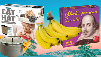Tons of amazing finds like a "Sopranos" cookbook, a hamburger press, a luxurious heated razor and more.