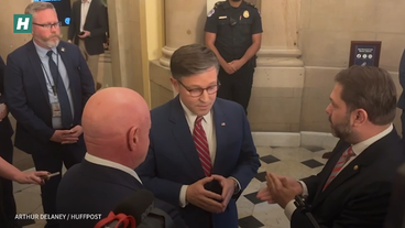 HuffPost's Arthur Delaney caught an exceptionally heated discussion between Speaker of the House Mike Johnson (R-LA) and Arizona's Democrat Senators Mark Kelly and Reuben Gallego.