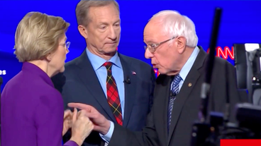 The billionaire interrupted a tense exchange between Sens. Elizabeth Warren and Bernie Sanders after the Democratic presidential debate.