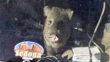 The pig-like creature jumped in to get to a bag of Cheetos only to be trapped when the hatch closed.