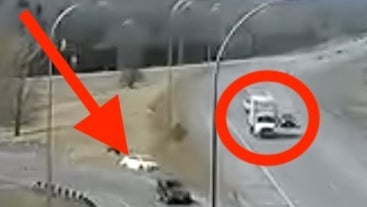 The truck burst into flames and nearly sailed right off an overpass.