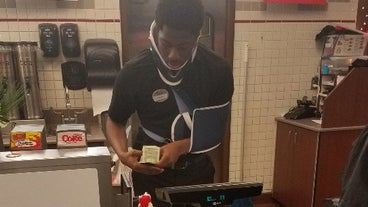 Jakeem Tyler, who had been injured in a car accident, returned to work to raise money for the homeless.