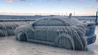 It almost looks like an ice sculpture, but there's a real car hidden in there.