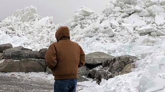 The ice shove shut down a parkway and started to "bulldoze trees and street lamps."