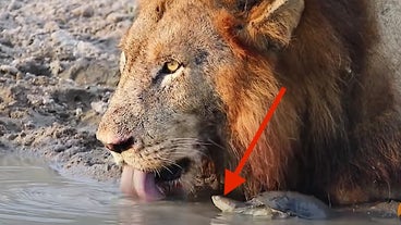 The king of the beasts performed a feat of strength to finish the hunt in South Africa.