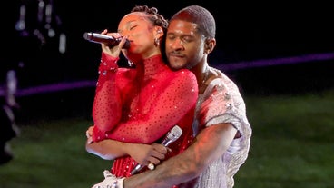 During the Super Bowl halftime show, things got steamy between the “Burn” singer and his special guest.