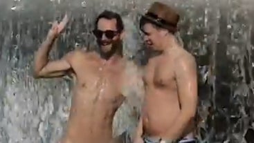 Two English-speaking tourists are being hunted by Italian police for skinny dipping in a war memorial fountain.