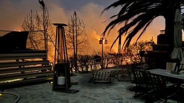 At least 10 people have been killed and thousands of structures have burned in wildfires raging in the Los Angeles area.